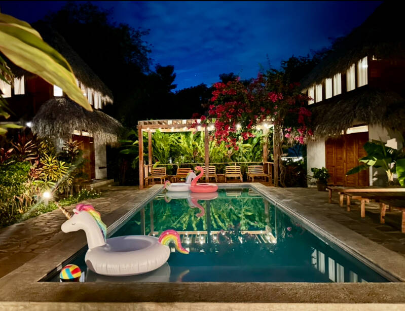 Waking up to the sounds of the waves crashing, showering in your outdoor bathroom with a ceiling of brilliant blooming vines, honing your surfing skills and nurturing your body and mind with yoga. Watching the sun set over the ocean from a two story hammock with a mock-or cocktail in hand..... and then falling asleep to the sounds of the ocean... it really is a dream.